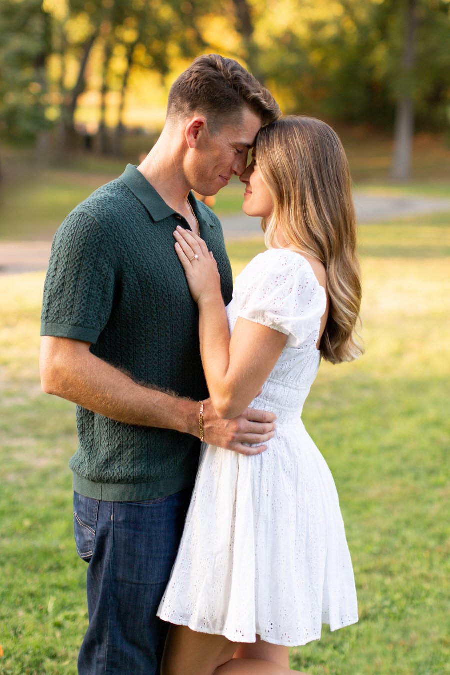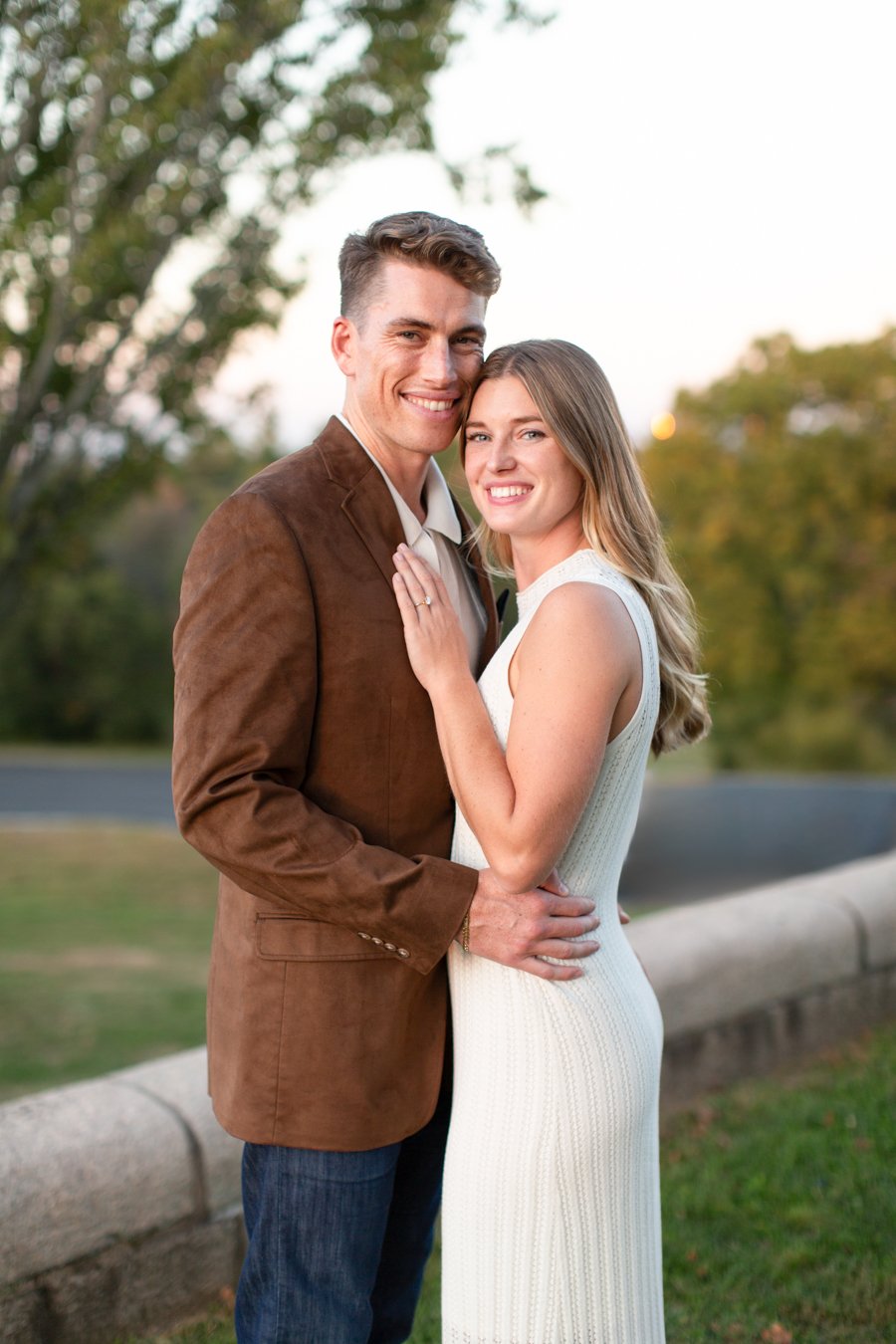 We spent the evening exploring Larz Anderson Park, one of Brookline’s most beautiful photography locations. There’s a tree there that I’ve been dreaming about photographing since 2020, and there is zero hyperbole there! That tree deserves it’s own blog post, that will come someday soon! Katie and Shane helped me search the park until we finally found it! Between the beautiful lighting, their laughter, and the effortless, genuine way they are together, it reminded me exactly why I love creating boutique portrait experiences that are fun, relaxed, and incredibly meaningful.